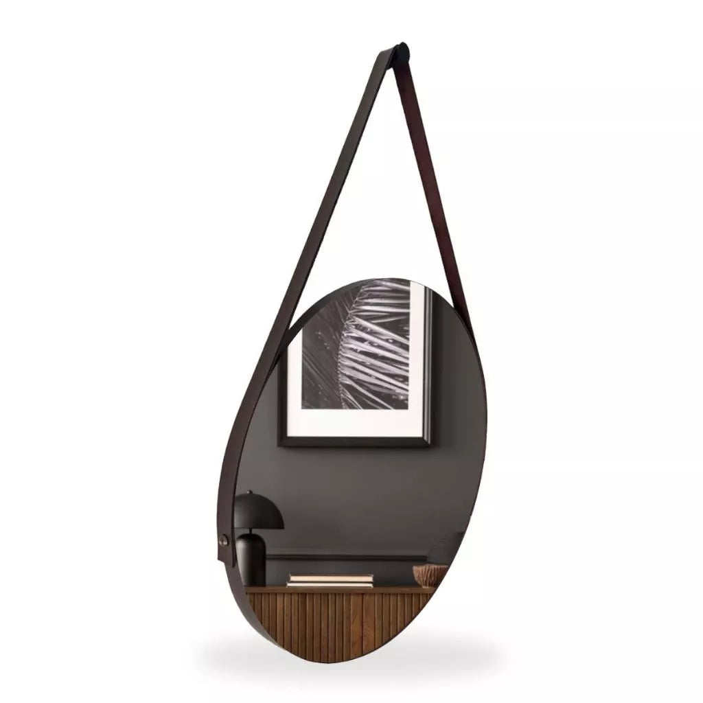 Com acabamento premium e estrutura leve, este espelho redondo é mais do que funcional — ele é um destaque no seu décor. O formato circular traz harmonia, e a alça em couro ecológico (ou material semelhante) adiciona um toque contemporâneo e criativo à peça.